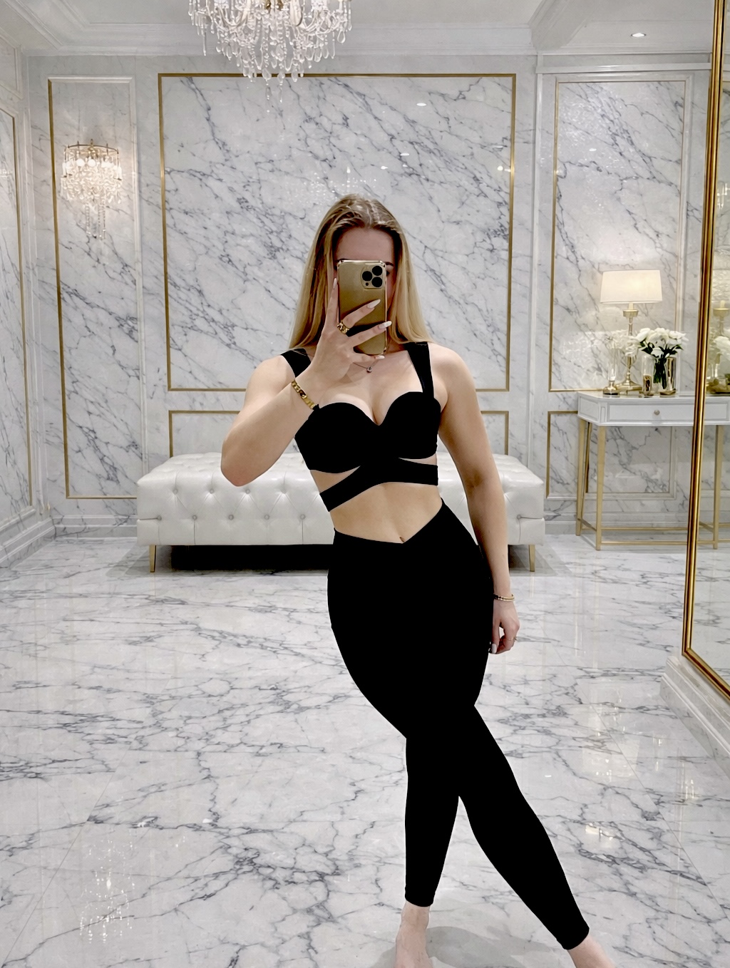Komplet sportowy Beauty Con Store łączy funkcjonalność z kobiecą estetyką. Elastyczne legginsy i dopasowany biustonosz zapewniają komfort, swobodę ruchów i pewność siebie podczas treningu oraz codziennej aktywności. 75% Nylon + 25% Spandex.